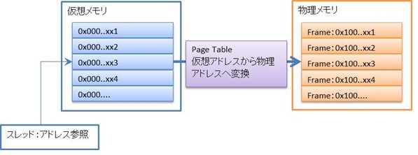 通常、プロセスからメモリ領域へのアクセスに使用されるアドレスは仮想アドレスです。
